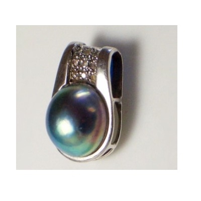 Australian blue mabi pearl pendant set in which gold with diamonds.