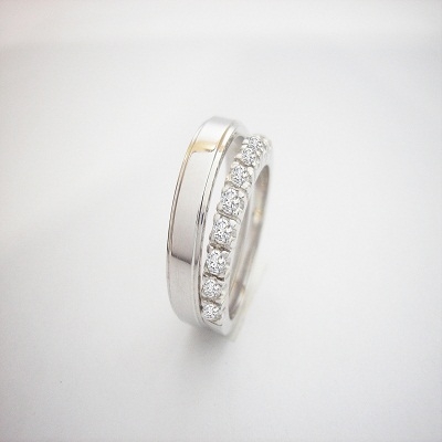 14k White Gold Wedding Ring with Round Brilliant-Cut Diamonds