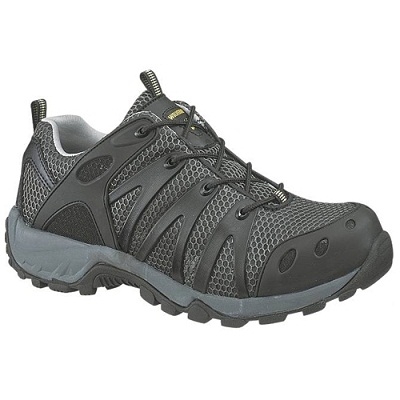 Electrical Hazard, security friendly, nylon spacer mesh and TPU upper. CK mesh lining, removable full-cushion insole. Compression molded. EVA foam midsole, cement construction, rubber lug outsole. Composite-Toe the Non-Conductive, Lighter-than-steel Ultra-Protective toe. Composite-Toe rated ASTM F2413-11 M I75 C/75 EH.