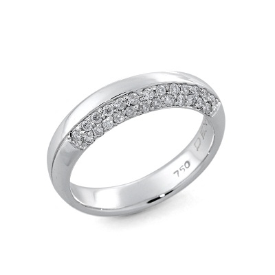 18K Polished Wedding band with two rows micro pave diamonds. Total carat weight 0.23ct diamonds