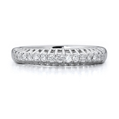 Elevated band set with 15 diamonds. Total carat weight 0.27