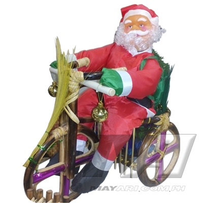 Santa on Rattan Bicycle Made of Rattan