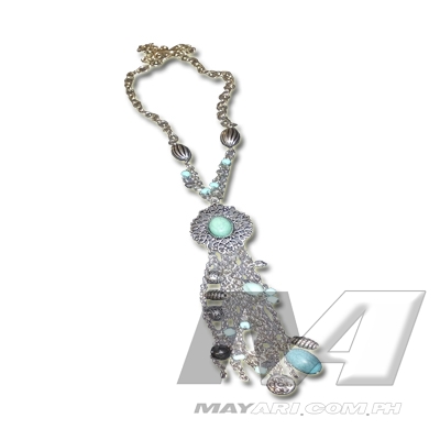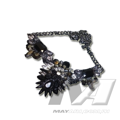 Necklace with embroidered glass crystals, glass beads and rhinestones.