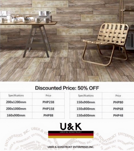 50 % OFF on Wood Ceramic Tiles Fit for indoor and outdoor tiles.. Also Fit for house interior... 150 x 600mm - 48php 150 x 800mm - 68php
