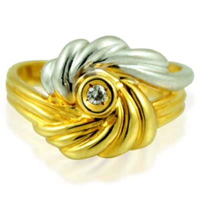 18k ladies ring with round brilliant cut diamond, white & yellow gold.