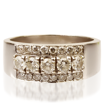 14k wedding ring with round brilliant cut diamonds, white gold.