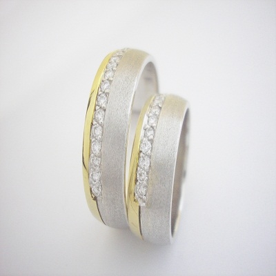 14k White and Yellow Gold Wedding Ring with 0.44tcw. Round Brilliant-Cut Diamonds