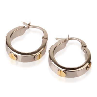 18k 2 Tone White & Yellow Gold Small Horse Shoe Hoop Earrings