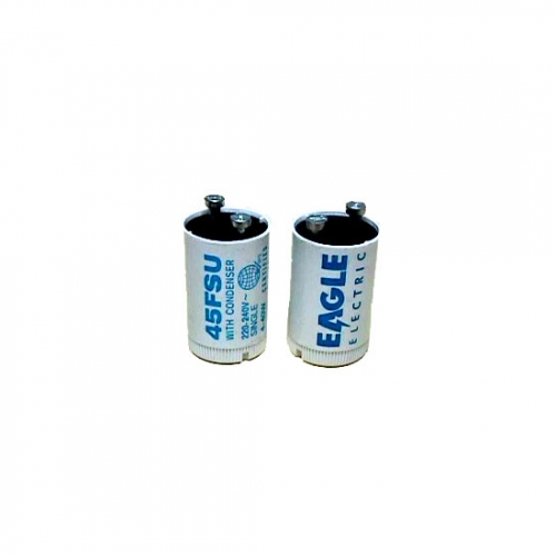 Fluorescent Lamp Starters (Cyan Series) with Lexian© Polycarbonate Thermo Plastic Canisters for 220-240V, 4 to 40 watt fluorescent lamps with condenser to reduce interference.